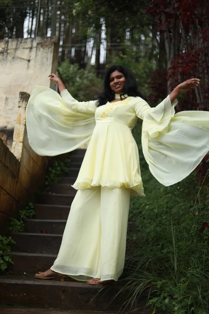 Meet Marigold Sets - a soft pastel yellow ensemble designed to make you glow with grace. Crafted in lightweight georgette, the peplum top features a flattering flare and delicate embroidered floral detailing along the bodice—adding a subtle yet charming touch.